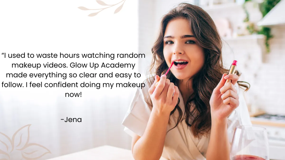“I used to waste hours watching random makeup videos. Glow Up Academy made everything so clear and easy to follow. I feel confident doing my makeup now!”